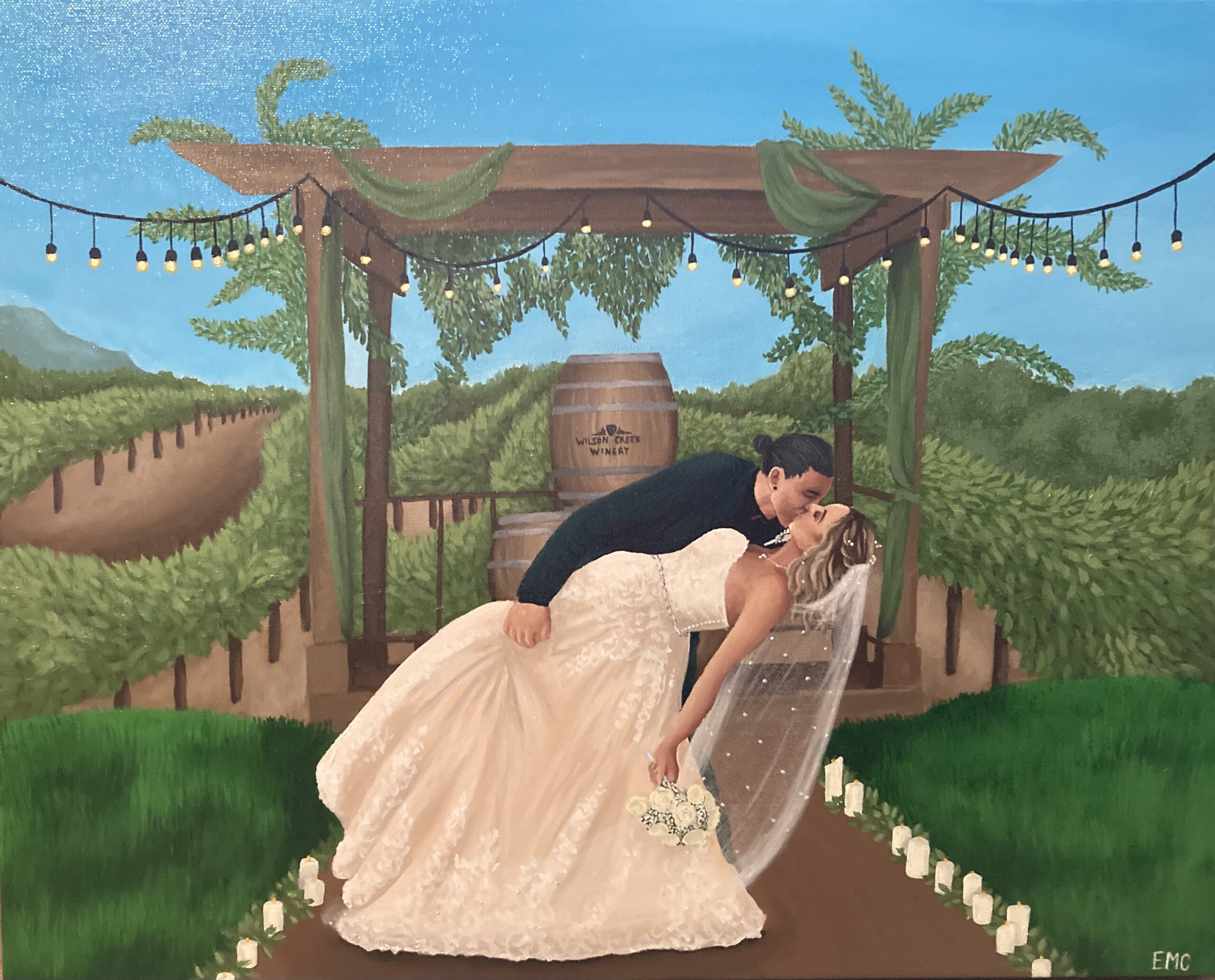 "Emily is so kind, sweet, and professional to work with. Her prices are very reasonable. She showed up to our venue on time and people loved watching her paint throughout the wedding and reception. She’s so thoughtful and sent us a personalized 1st anniversary card. Highly highly recommend if you want to hire a painter for your wedding!"