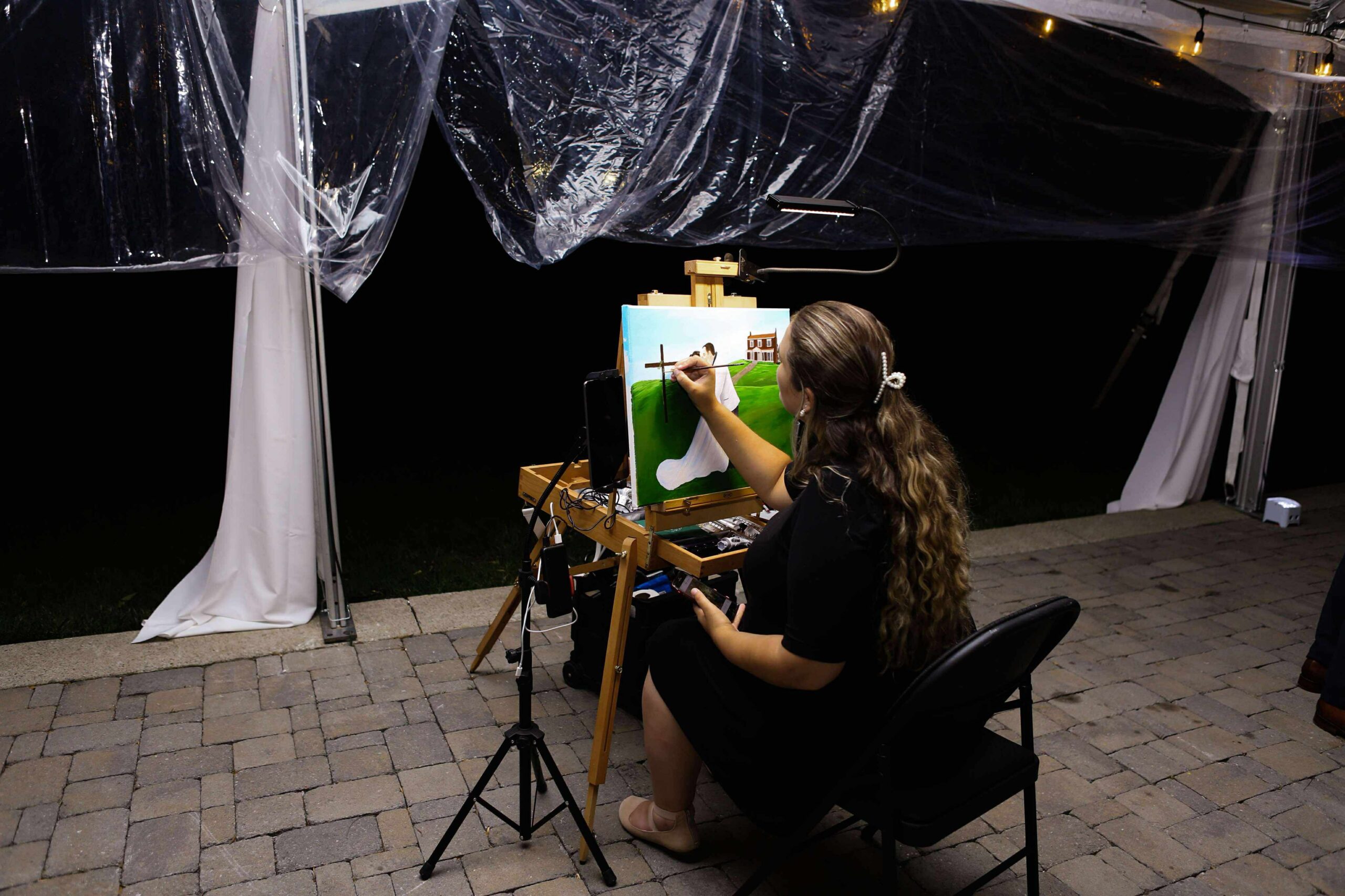 "Emily is so kind, sweet, and professional to work with. Her prices are very reasonable. She showed up to our venue on time and people loved watching her paint throughout the wedding and reception. She’s so thoughtful and sent us a personalized 1st anniversary card. Highly highly recommend if you want to hire a painter for your wedding!"