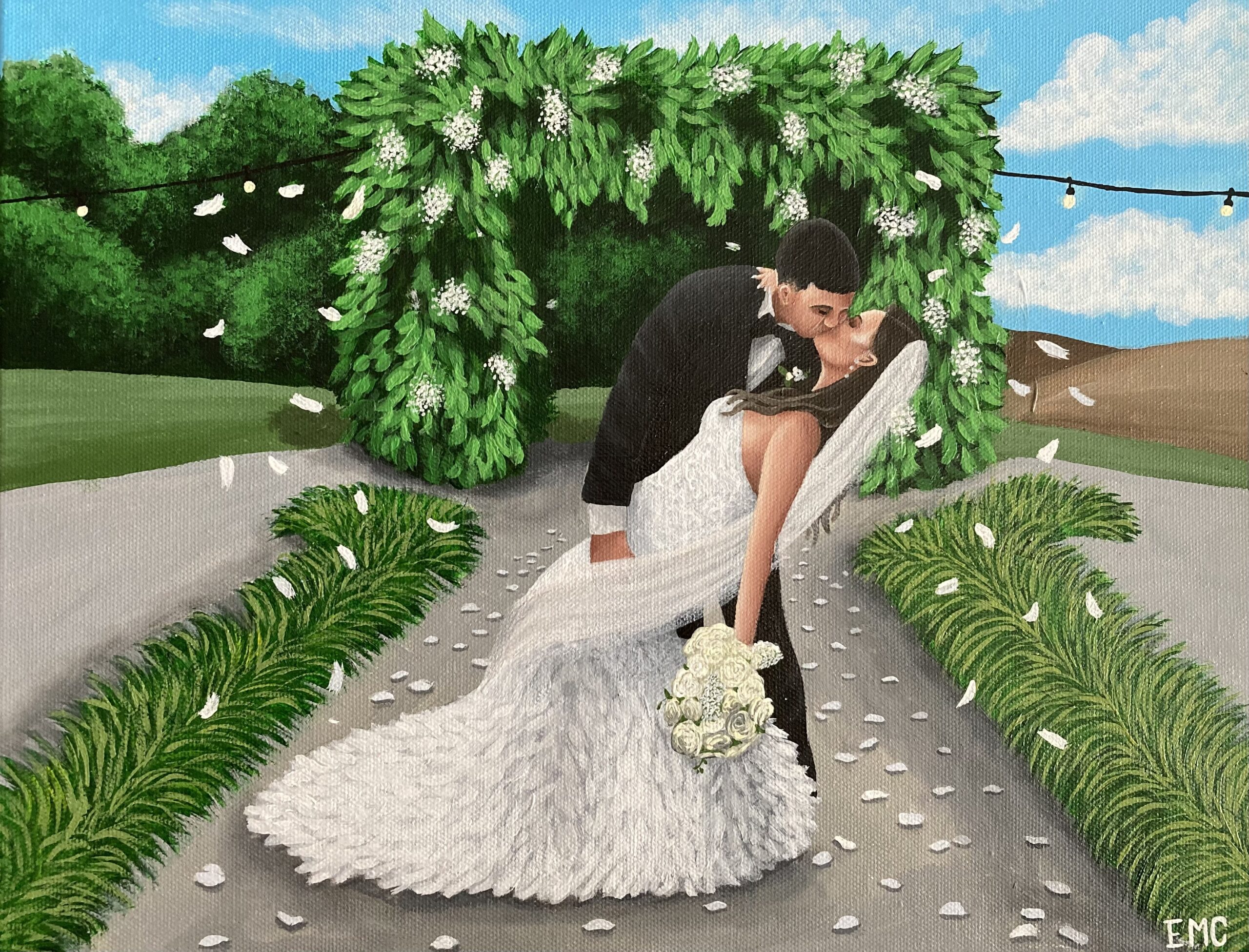 "Emily is so kind, sweet, and professional to work with. Her prices are very reasonable. She showed up to our venue on time and people loved watching her paint throughout the wedding and reception. She’s so thoughtful and sent us a personalized 1st anniversary card. Highly highly recommend if you want to hire a painter for your wedding!"
